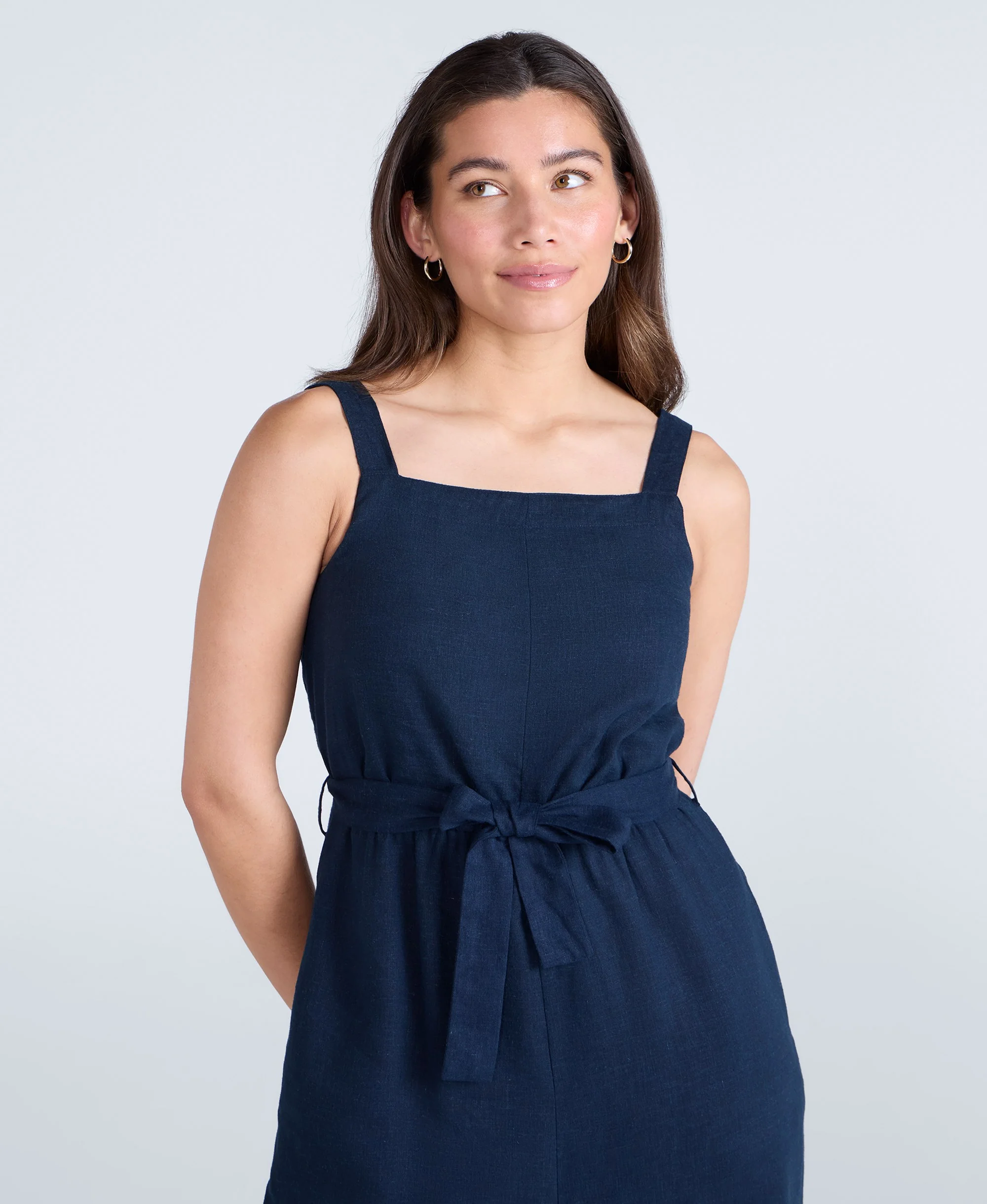 Becca Womens Linen Jumpsuit - Navy