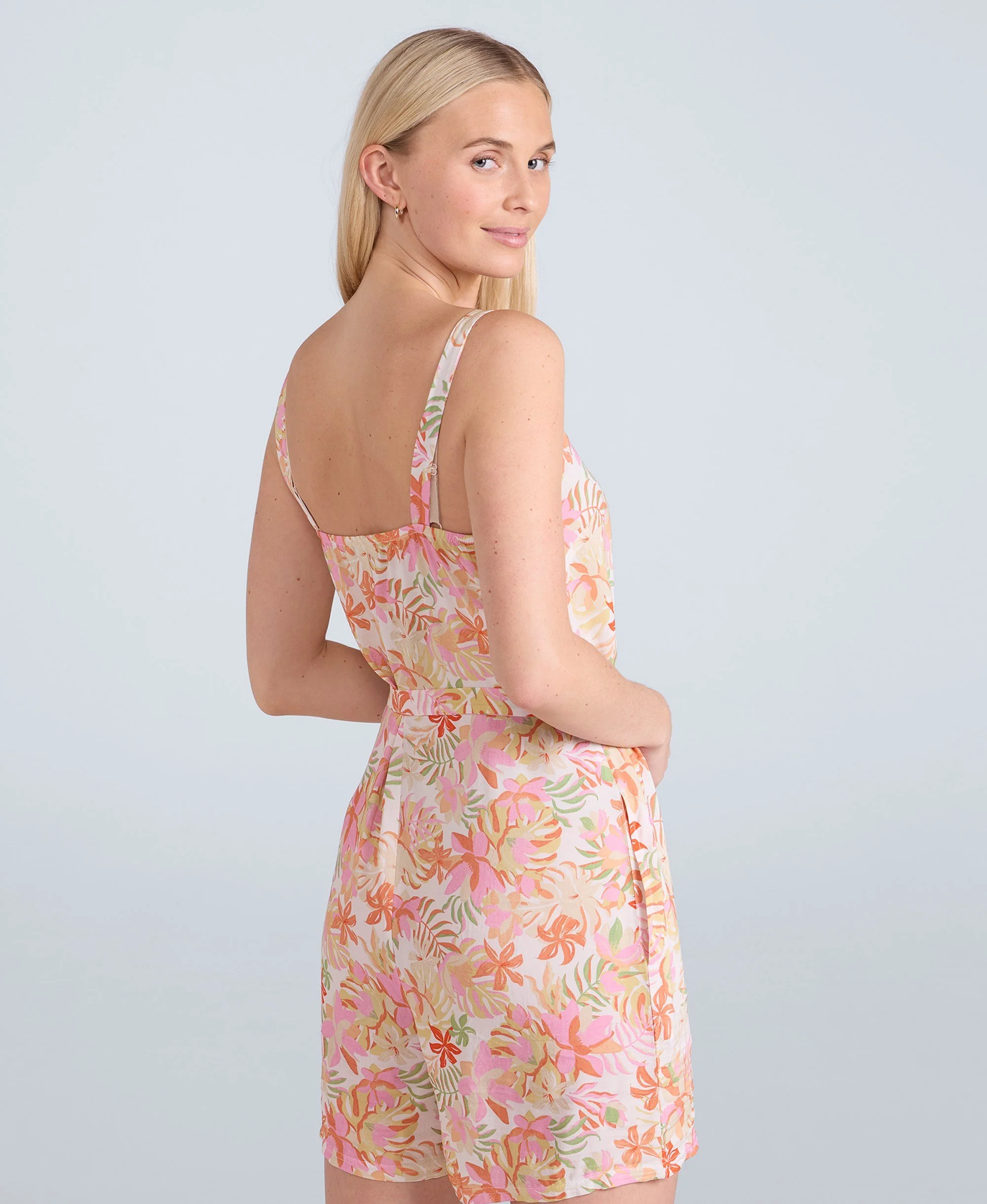 Taking you from Woolacombe to Waikiki, our Flora Playsuit is made from ECOVEROâ„¢ fibres for a soft, satiny finish. Decorated with a signature hibiscus print, this adjustable all-in-one is rich in aloha vibes.